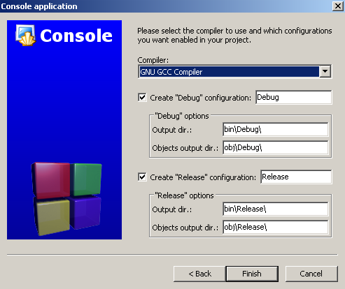 ...gombot megnyomva a Dokumentumok mappádat. (Jegyezd meg a mappa elérési útját!) - A negyedik ablakban a fordítóprogramot lehet megadni. Ha nem a „GNU GCC Compiler” van kiválasztva, akkor válaszd azt, továbbá ha a „Create "Debug" configuration” nem lenne beikszelve, akkor azt javítsd ki. De ezek így szoktak lenni.